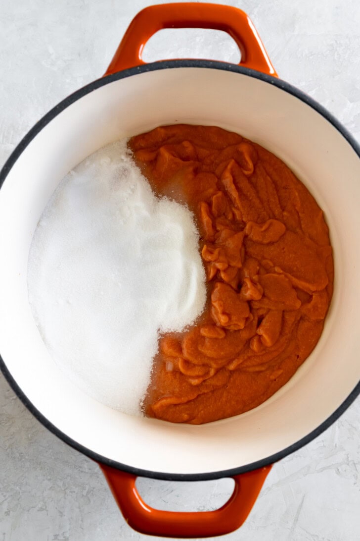 - Bring to a boil, and simmer for 20-25 minutes, stirring frequently, until guavas are soft and break apart.