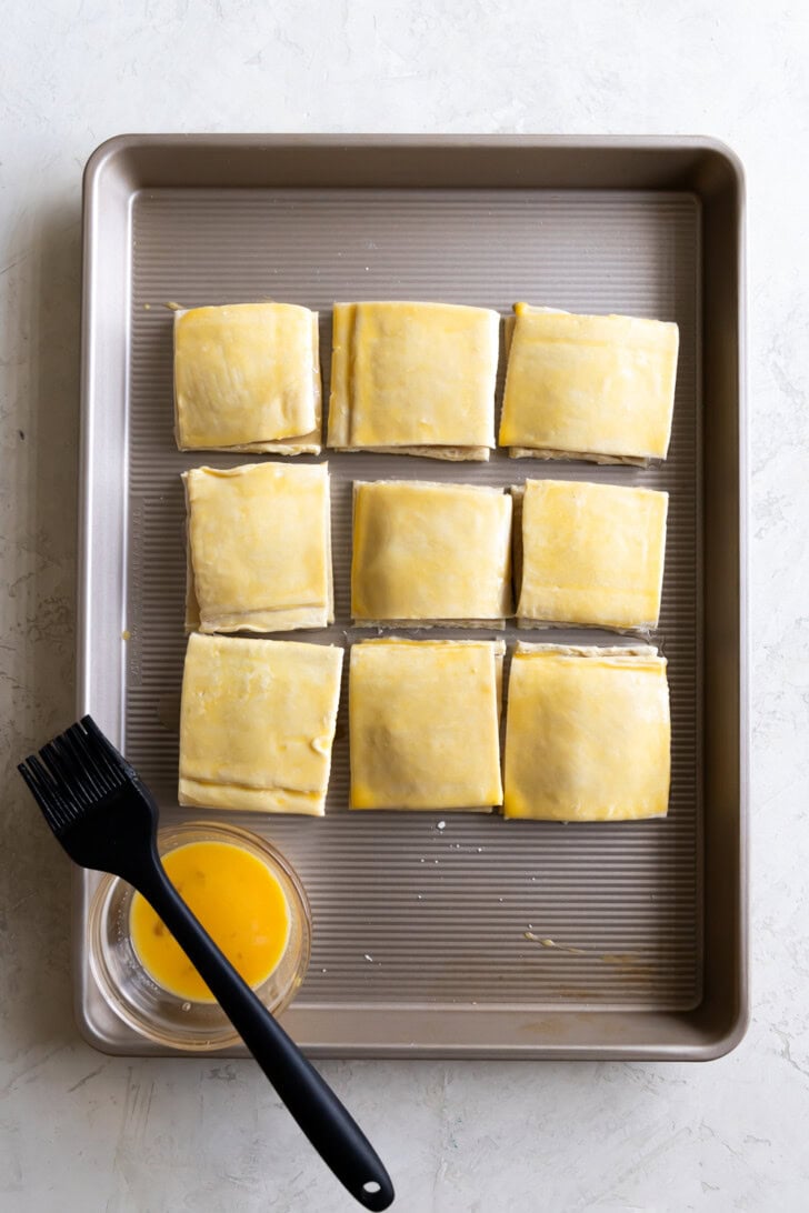- Brush egg wash on each one to get that flaky crust. Bake for 25-30 minutes or until the tops are golden brown.
