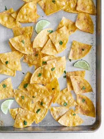 Salty, crunchy homemade baked tortilla chips with just 3 ingredients! Quick and easy-to-make, you’ll never buy store-bought chips again. Also, a great way to...