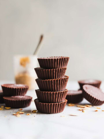 These almond butter cups are made with just 5 ingredients – dark chocolate, coconut oil, almond butter, chopped almonds, and sea salt. You know...