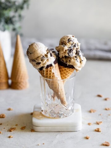 Decadent, rich, smooth, creamy, sweet, salty, delicious salted caramel ice cream made with chocolate-covered waffle cone pieces. The best ice cream! My favorite ice...