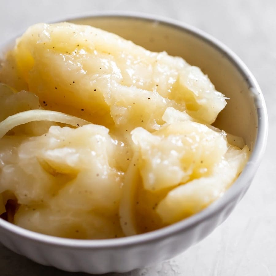 I make this Yucca for holidays and when we have a Cuban style meal. Use more onions typically 3 medium onions sliced into rings. Once the onions are soft remove from skillet and add 10 to 12 cloves of garlic; saute’ garlic till it blooms fragrantly. Add the onions back to skillet , add about 1/4 cup sour orange and the juice of several lemons. Pour the hot mixture over the Yucca. Add several slices of lemon and at serving time grate some lemon over the entire dish.