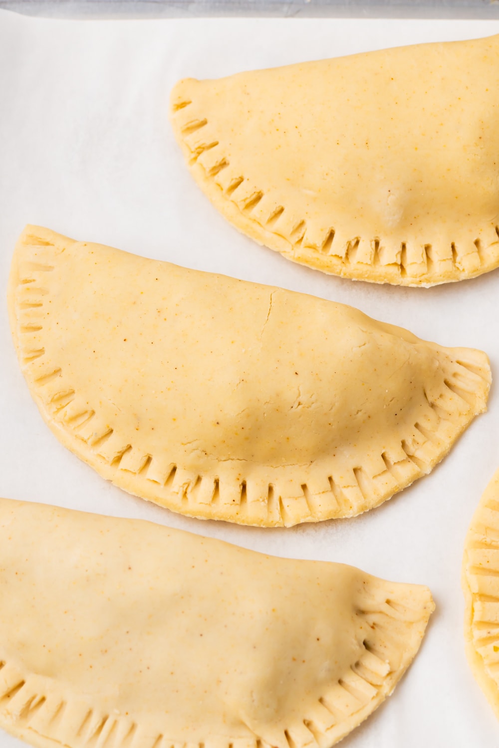 Preheat your oven to around 350°F. Place the empanadas on a baking sheet lined with parchment paper, leaving some space between each one.