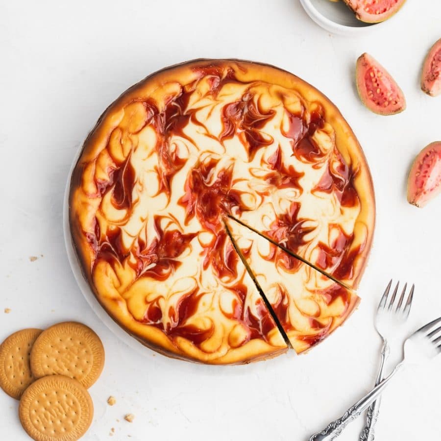 This guava cheesecake is rich and creamy with swirls of guava marmalade on a buttery Maria cookie crust. You and your family won't get enough!