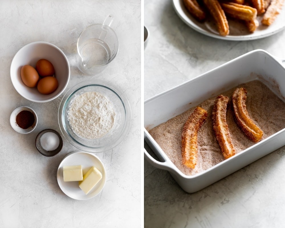 In case you haven’t heard, churros are pastry logs of fried dough that are crispy on the outside and light and airy on the inside. They taste like cinnamon sugar fried dough!