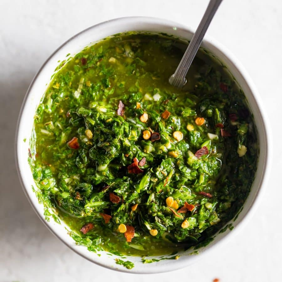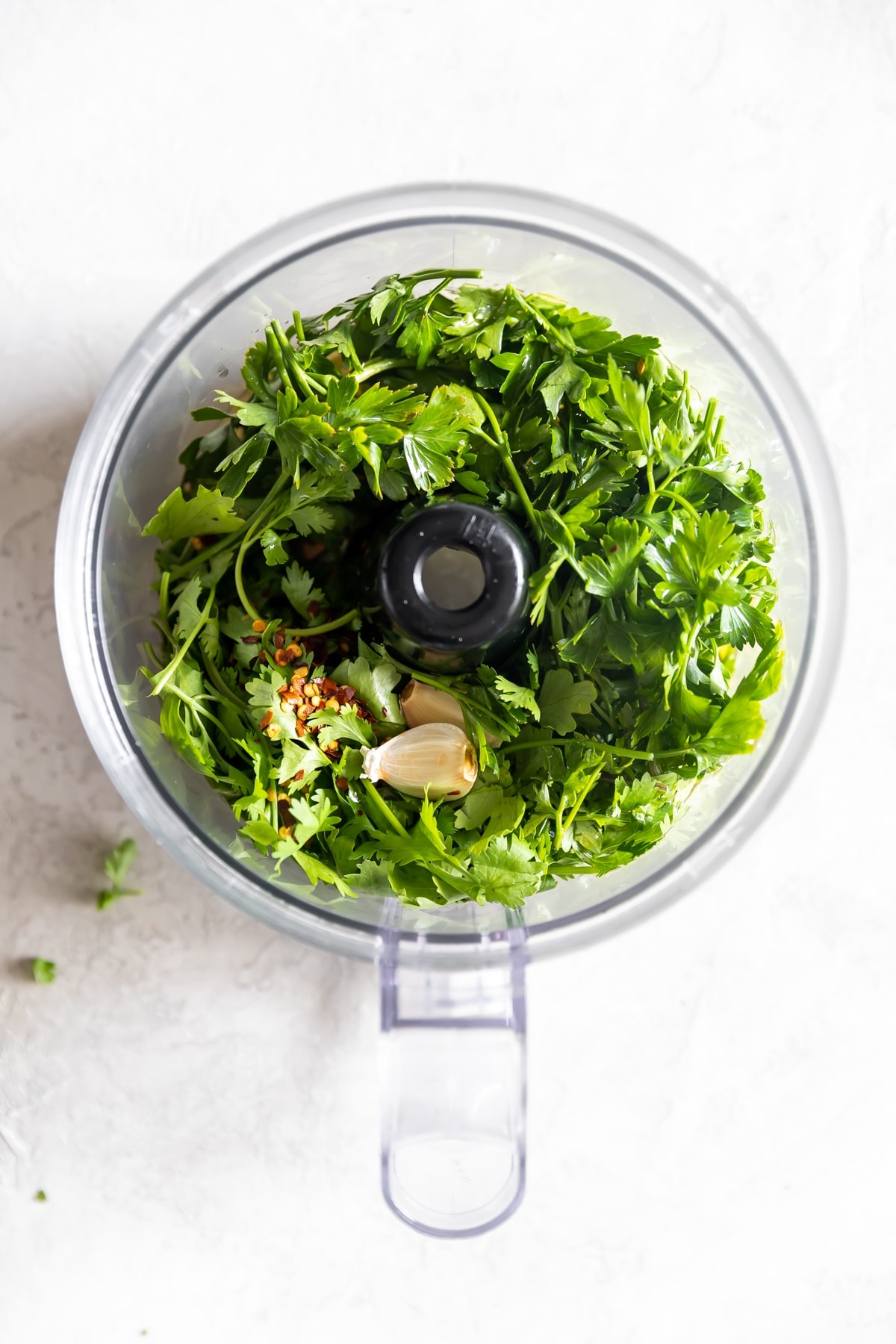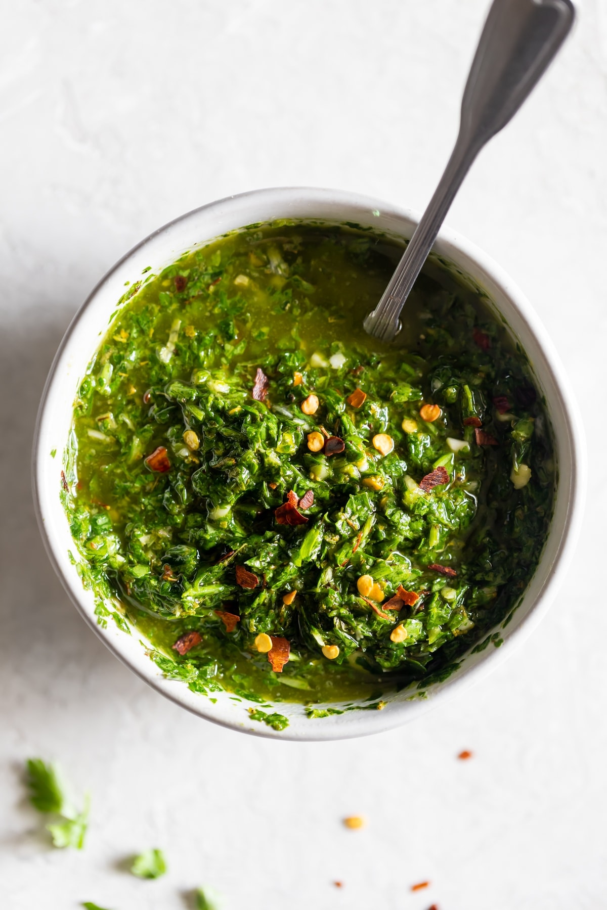 There are several variations of this chimichurri recipe where you can switch out the herbs like using cilantro instead of the traditional parsley.