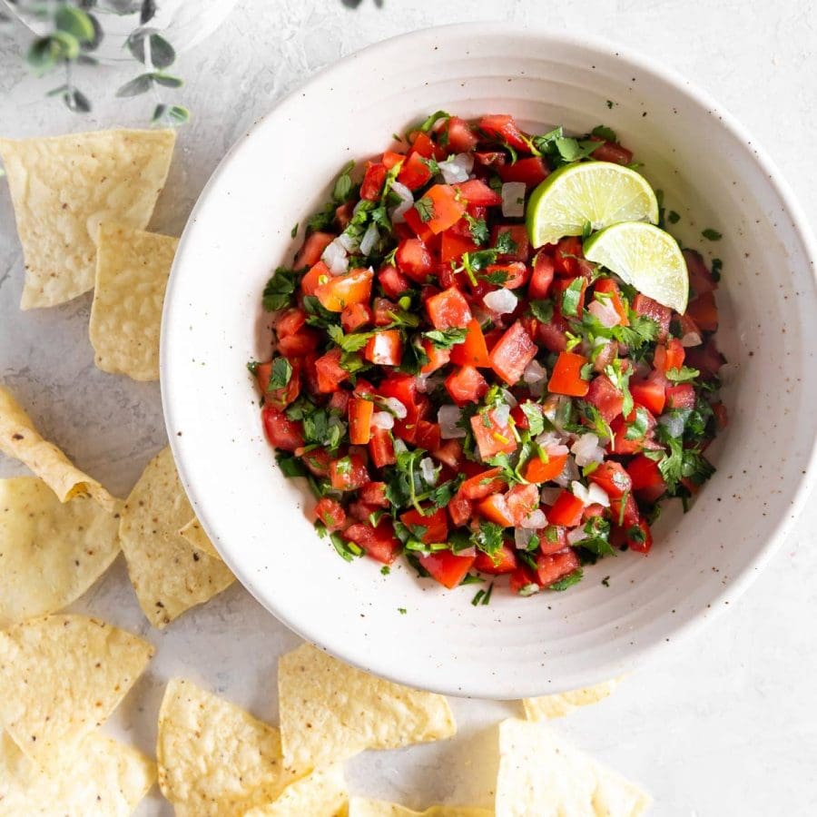 One of my favorite appetizers and snacks to make, aside from kielbasa sausage bites, is this pico de gallo recipe.