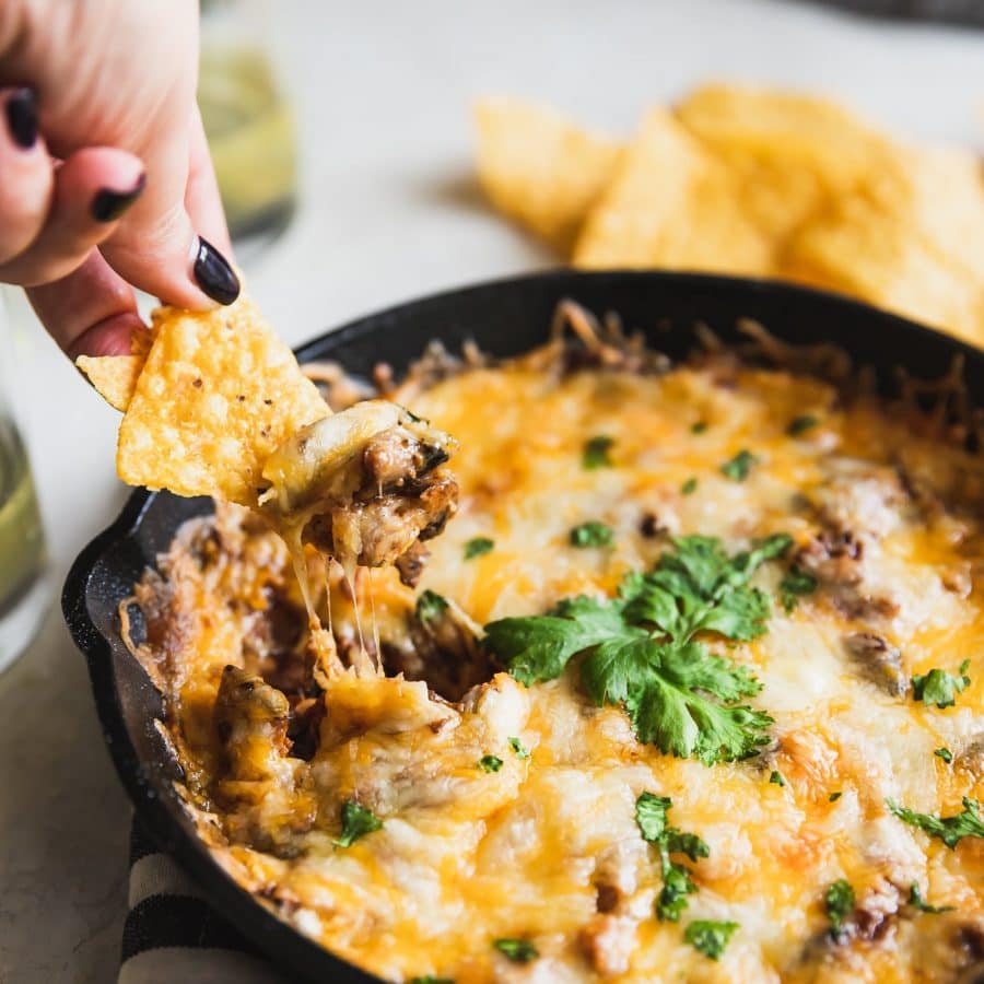 I’d like to call this recipe a “create your own adventure” recipe. You can make queso fundido without chorizo, you can make it without mushrooms, you can make it with both. It’s super versatile, and I hope you love it as much as I do.