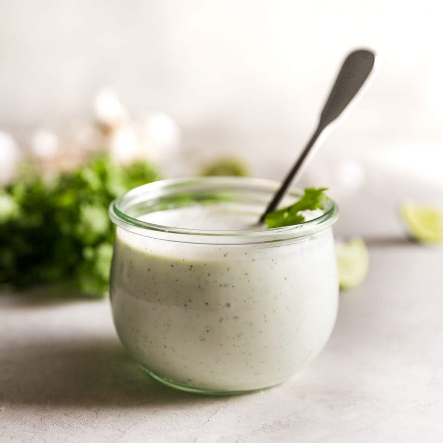 A deliciously creamy garlic sauce made with chopped cilantro, fresh garlic, lime juice, and sour cream. You’ll love adding it to just about anything. This sauce is super easy-to-make and ready in just 10 minutes!