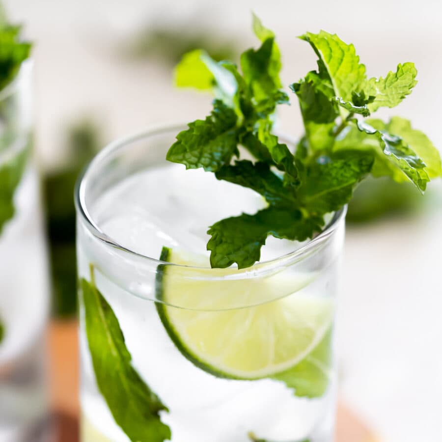 - Fresh mint leaves. When you muddle the 4 mint sprigs in each glass, the minty aroma will fill the air! I also add more into the glass as garnish.