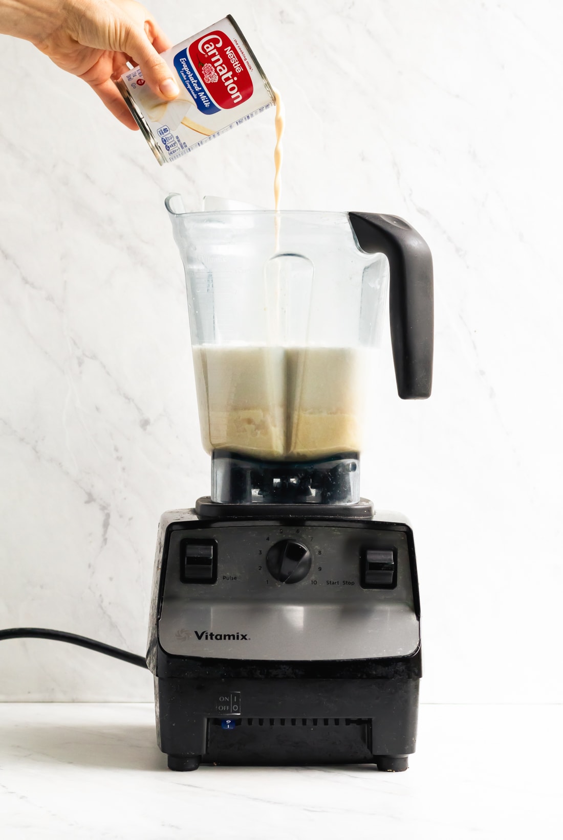 - In a high-speed blender, add evaporated milk, sweetened condensed milk, sweetened cream of coconut, full-fat coconut milk, white rum, spiced rum, vanilla extract, cinnamon, and nutmeg. Blend until well combined.