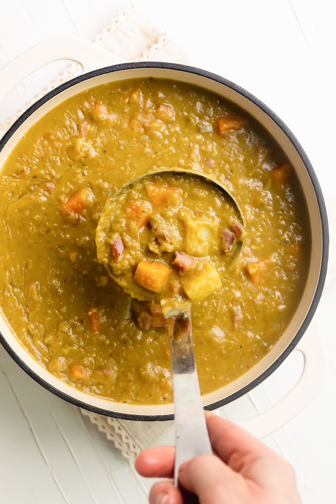 - Prefer a vegetarian soup? Omit the smoked ham and use vegetable stock. You may have to add more salt though so be mindful of that.