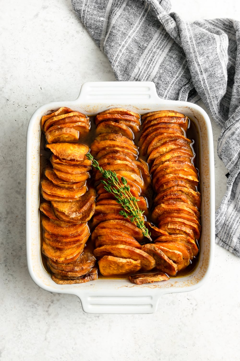 🍠 By the way, if you want to zhush up these baked thin-sliced sweet potatoes even more, top them with maple-cinnamon candied pecans. The crunchy texture of the pecans with the caramelized sweet potatoes is really just chef’s kiss!
