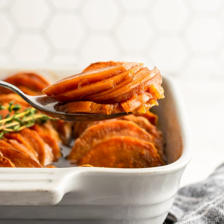 The thin slices soak it all up, so you get caramelized edges and deep flavor in every bite. This is one of my go-to Thanksgiving side dish recipes, but it’s just as good for Sunday dinner.