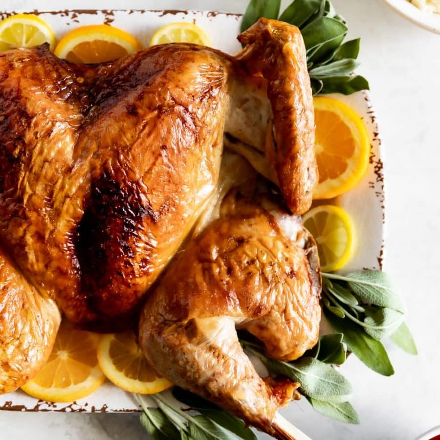- 12-14 lbs whole turkey, thawed, neck & giblets removed