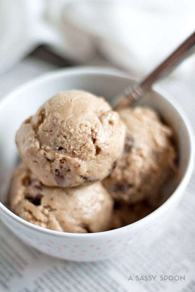 You have two options. Throw them out OR…….. make this no-churn banana almond butter ice cream! (Well, you can also make chocolate chip banana bread too but that’s another post hehe)