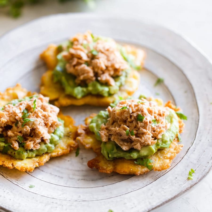 I made these tostones using my favorite tuna and salmon brand, . Why are they my favorite brand? Because of their clean flavor!