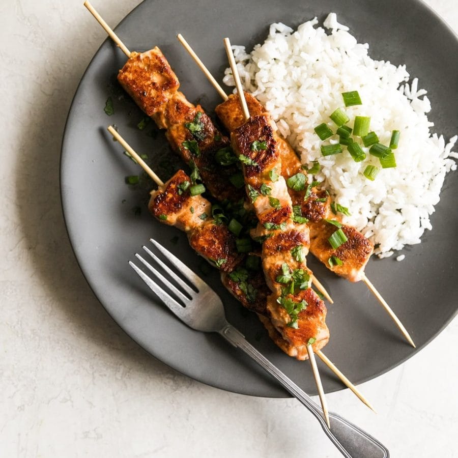 You can also use this same marinade for salmon fillets if you don’t want to use or don’t have wooden skewers. As a matter of fact, you can totally make this easy honey garlic marinade the day before and have it ready to go!