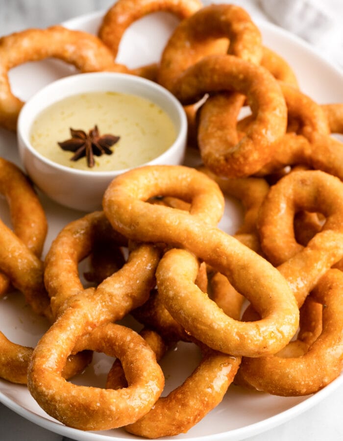 Cuban Bunuelos are pillowy soft and doughy, fried pastries made with yuca and malanga (root vegetables), shaped into figure 8s, then coated in homemade cinnamon-anise syrup. These classically Cuban anise-spiced fritters are traditionally made for the holidays, Noche Buena (Christmas Eve) and, New Year's Eve.