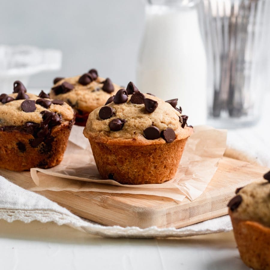 Tender, soft, fluffy muffins packed with pretty domed tops and tons of chocolate chips make the perfect breakfast in my opinion.