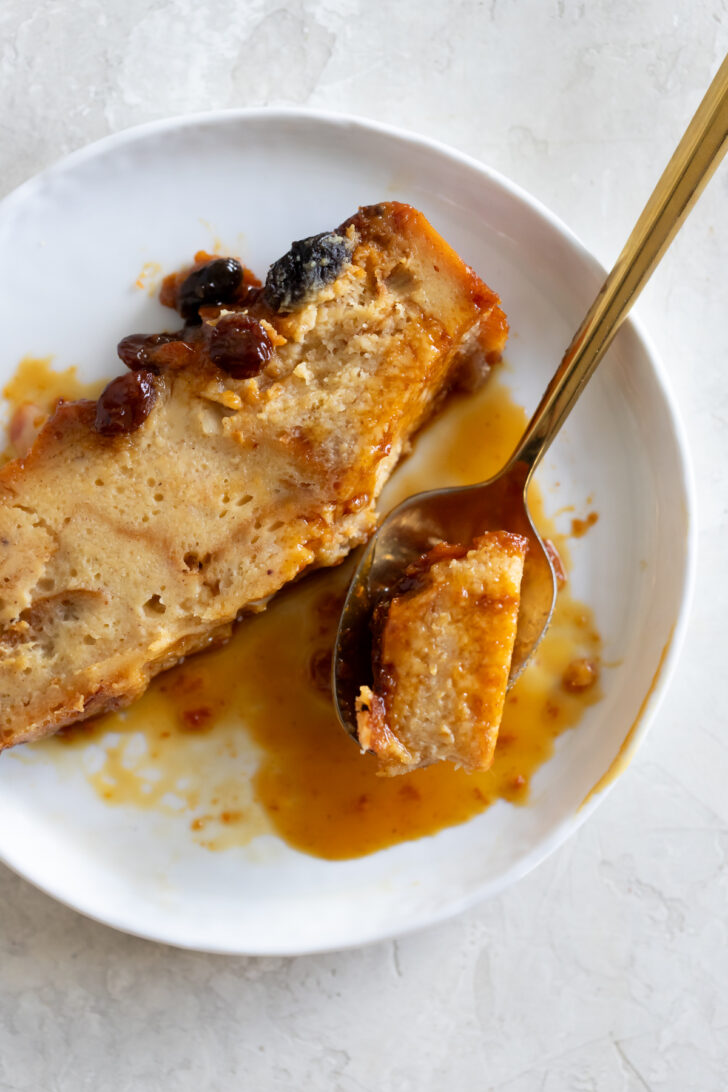 Pudin de Pan (Cuban Bread Pudding with Rum Raisins + Almonds)