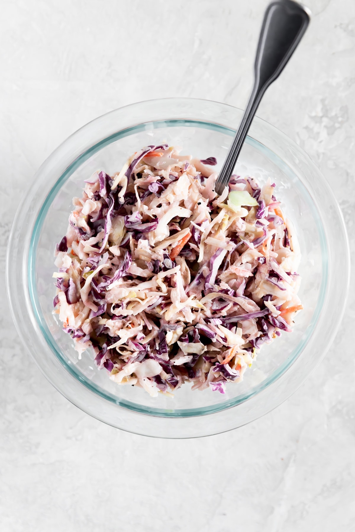And you can absolutely make the coleslaw ahead of time too. It actually tastes even better when it has time to sit and soak up all the flavors. Store it in an airtight container in the fridge for up to 2 days.
