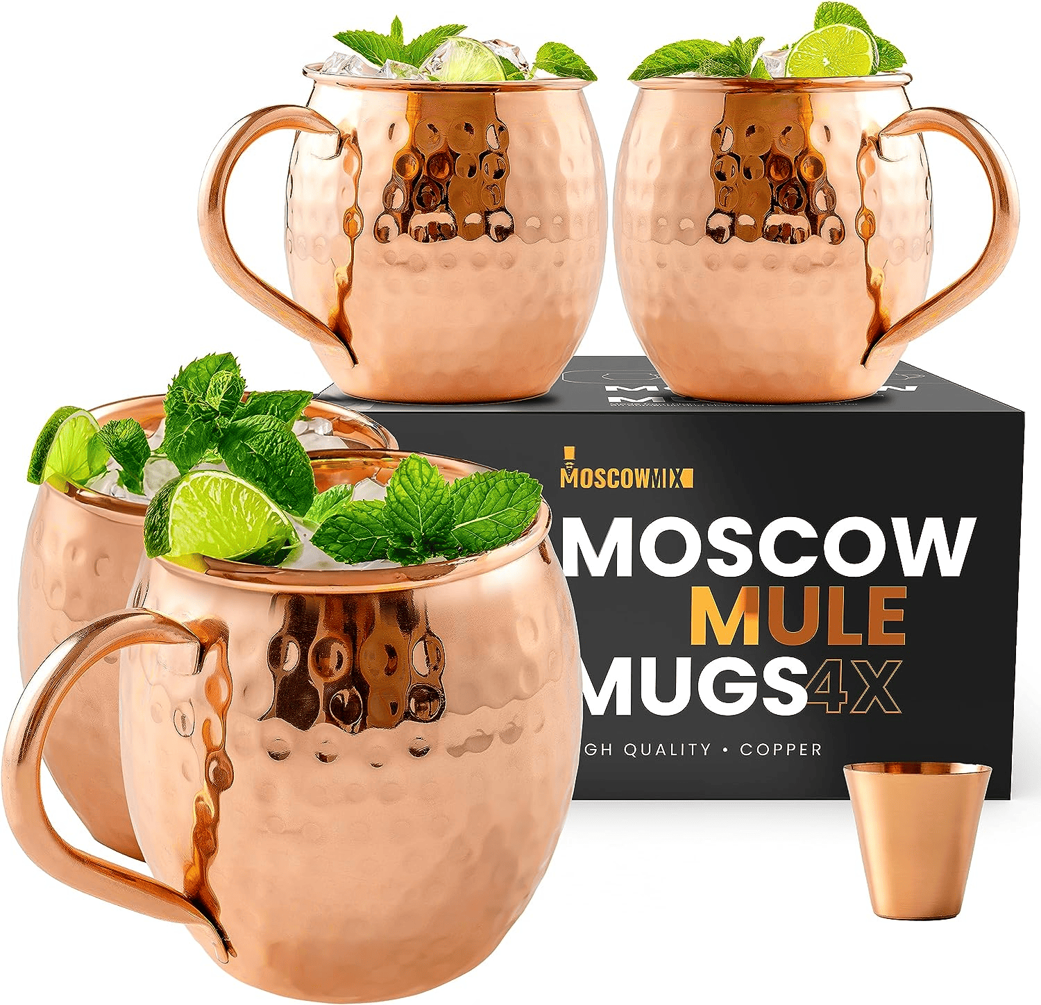 This set of 4 pure copper mugs is specifically designed to enhance the flavors and presentation of the iconic Moscow Mule drink.
