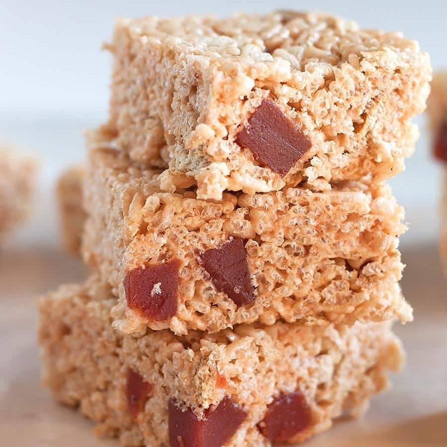 Deliciously sweet rice Krispie treats made with guava marmalade marshmallow cream, guava paste, and crumbled Maria cookies!