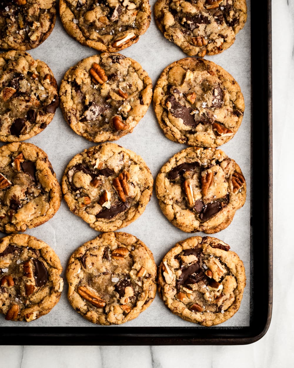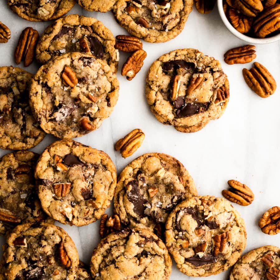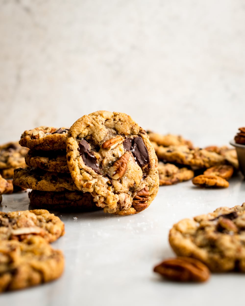 Crisp, chewy edges, soft center, melty chocolate, cinnamon, and crunchy pecans – what’s not to like!? Let me show you how to make these pecan chocolate chip cookies.