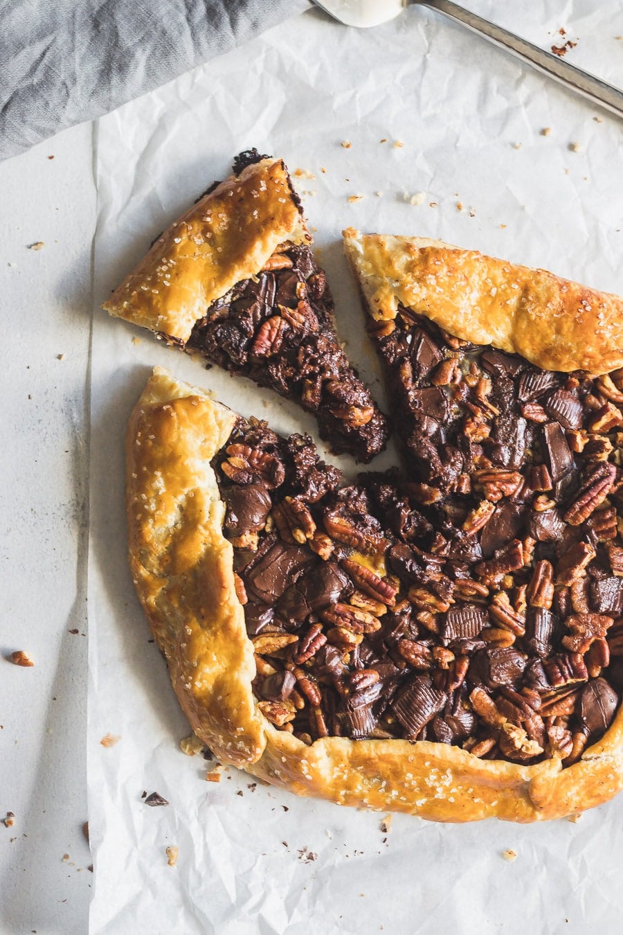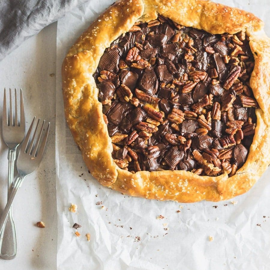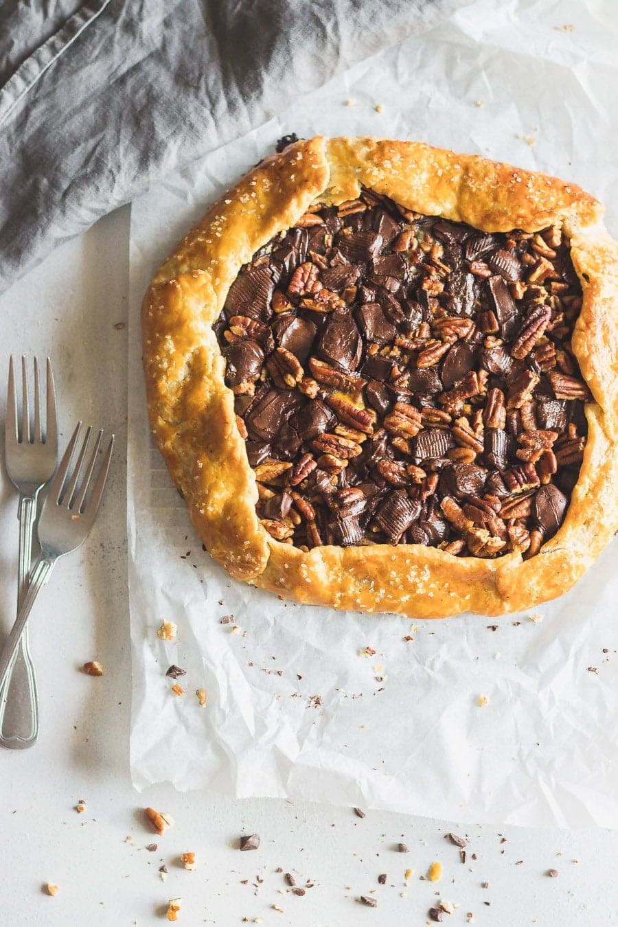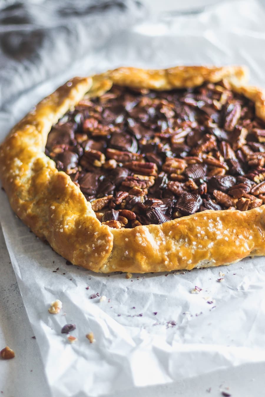 Everything you love about pecan pie but WAY easier. This flaky buttery pecan pie galette has dark chocolate, strong espresso, raw honey, and chopped pecans.