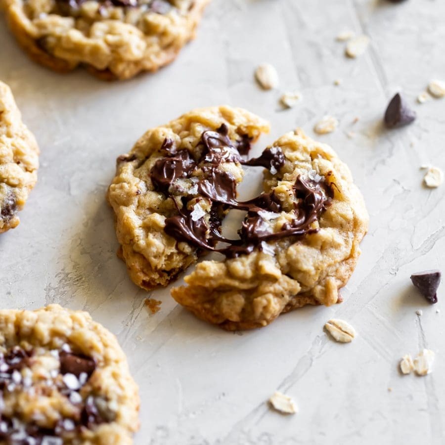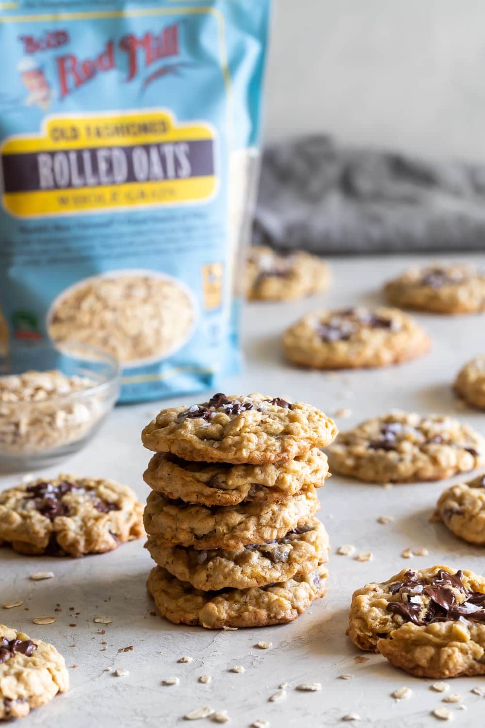 I’ve been using Bob’s rolled oats for years. They are my go-to for breakfast and for cookies like these! These oatmeal chocolate chip cookies contain more protein and fiber compared to other cookies. And that’s a win in my book!