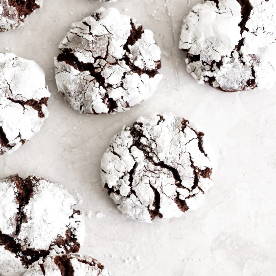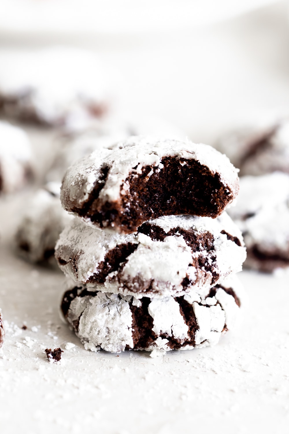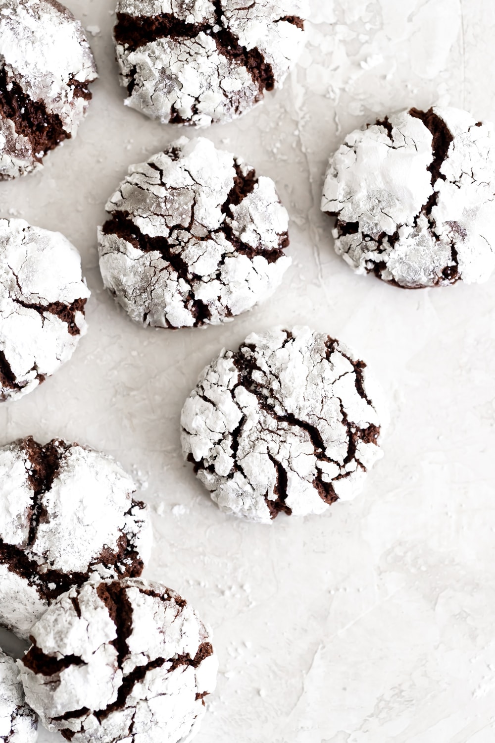 I’ll be honest, I’m usually a chewy chocolate chip cookie girl through and through. But these chocolate crinkle cookies totally won me over. I’ve made them for the holidays through the years (along with my double chocolate peppermint cookies).