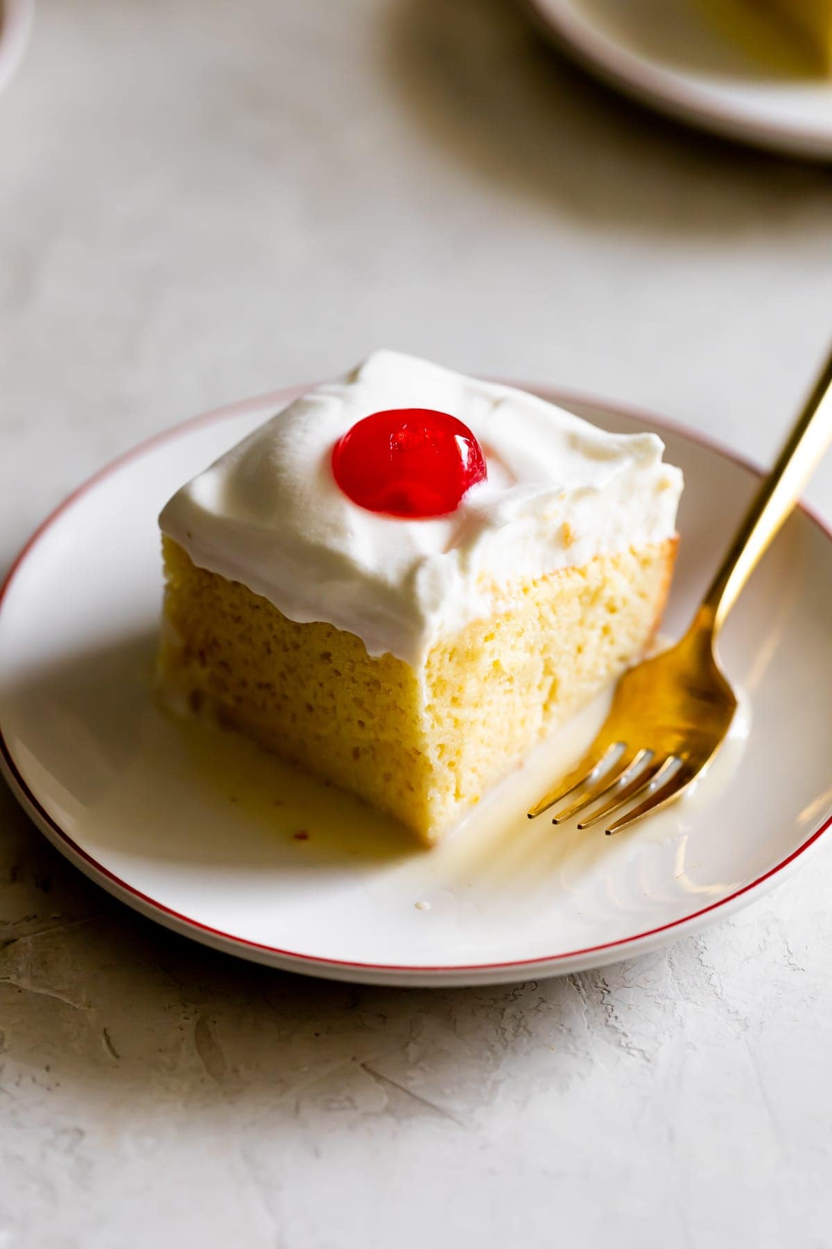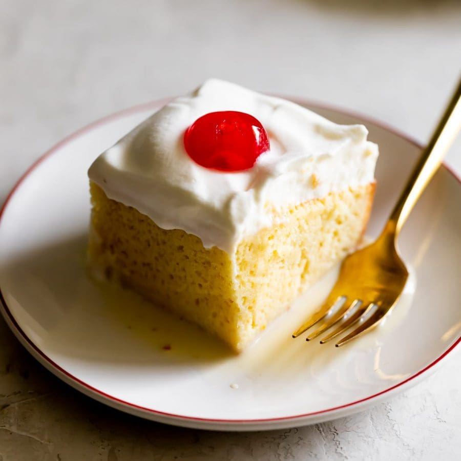 This authentic tres leche cake, however, is the exception to the rule! Just imagine vanilla cake soaked with three different types of milk and then topped with whipped cream and cherries.