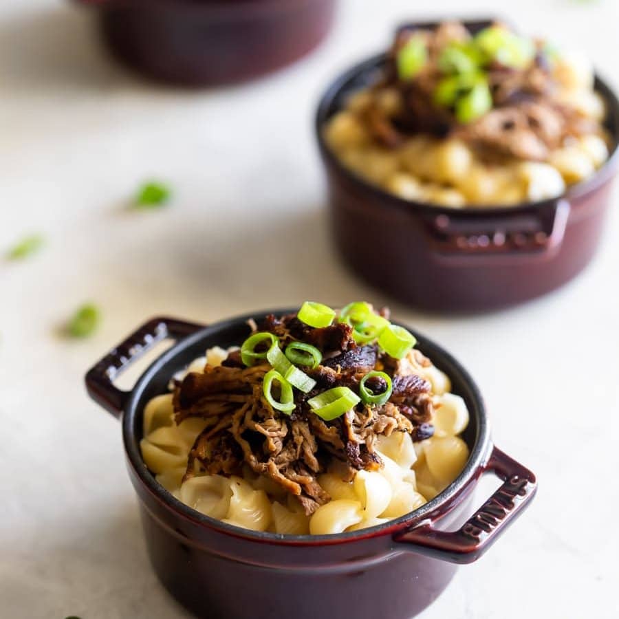 Cuban-style vaca frita (crispy shredded beef) cooked with onions then topped on creamy mac and cheese! A Cuban staple meets an American classic.