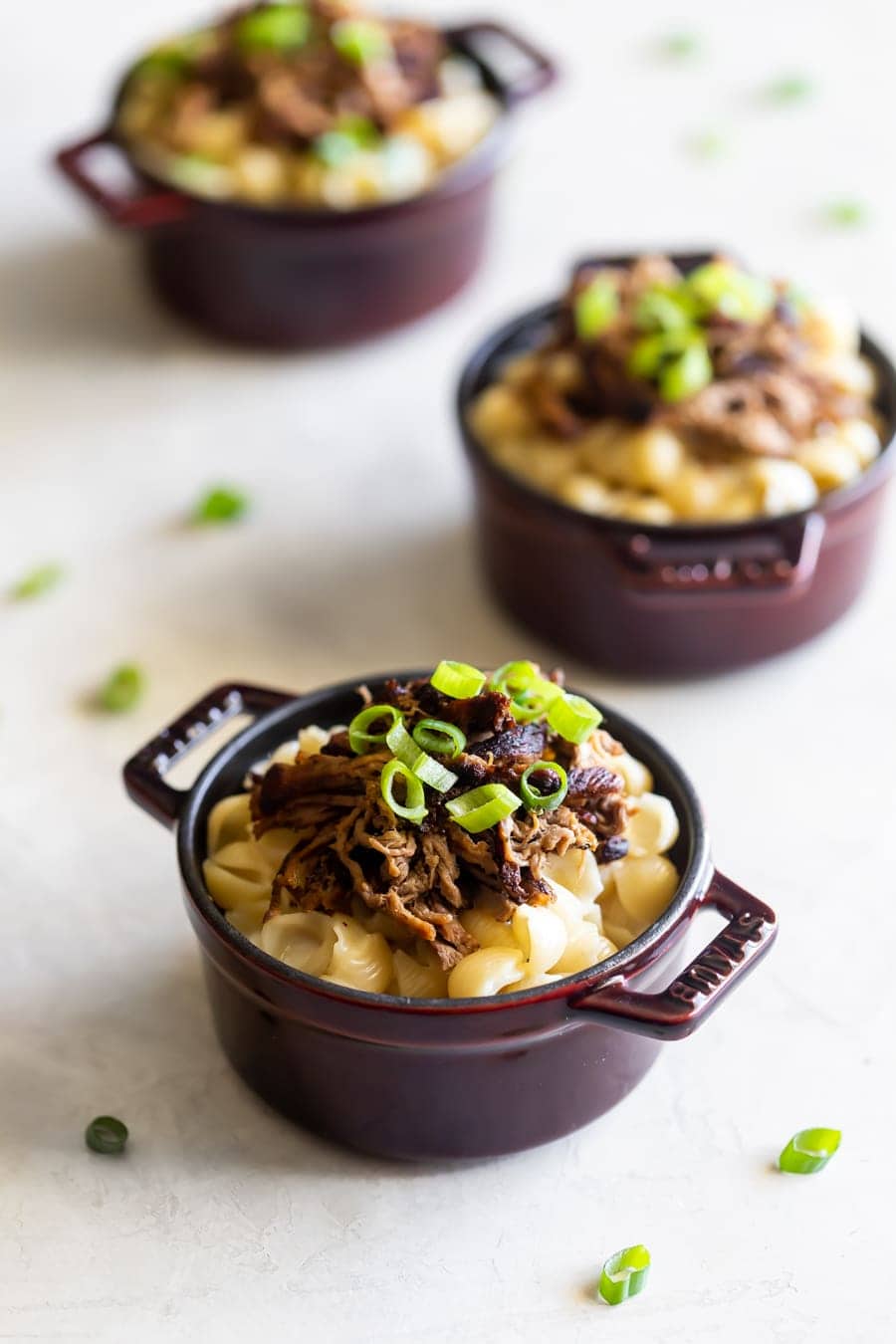 Once that’s ready, all you have to do is plate the mac and cheese then top with the vaca frita and sliced green onions. I hope you enjoy this dish as much as I do!