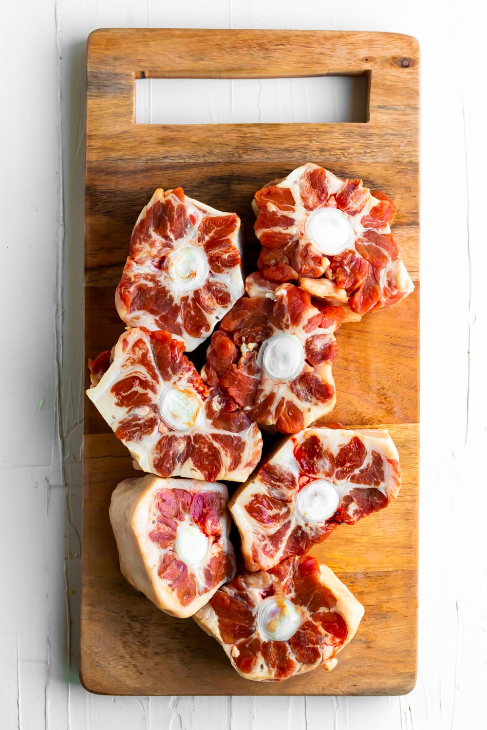 - 4 lbs beef oxtail, fat trimmed, disjointed, cut in 2-inch chunks