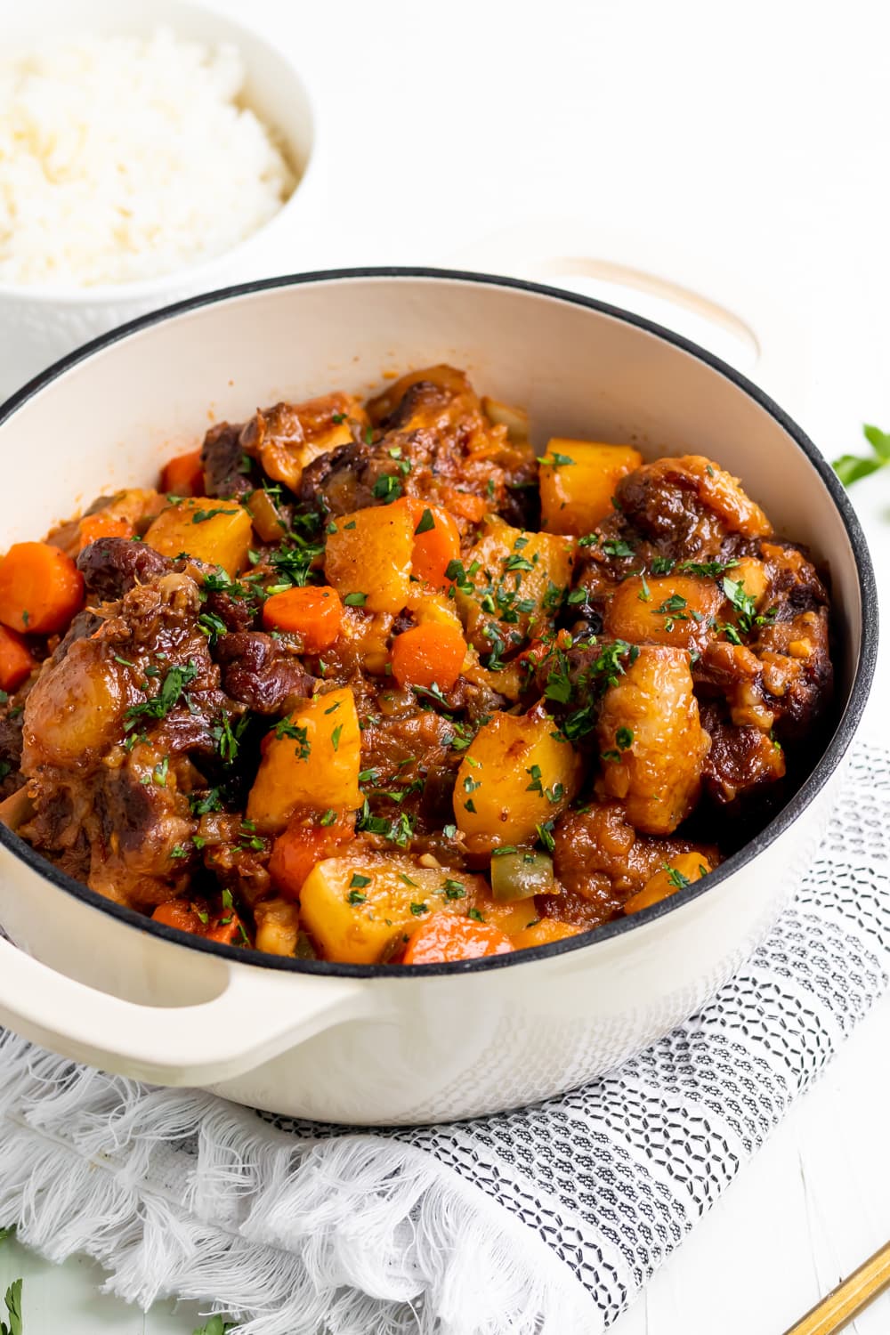 - Hearty and nourishing. Every time my cousin from out of town comes to visit, my family makes this dish because, with tender oxtail, flavorful sauce, and a medley of aromatic spices and vegetables, this stew provides a comforting and fulfilling family-centric meal that creates lasting memories around the dinner table.