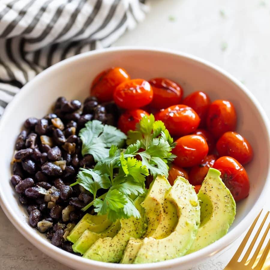 Flavorful and easy-to-make black bean salad made with sliced avocado, sautéed black beans, and sautéed charred tomatoes. A veggie bowl that’s ready in just 20 minutes!