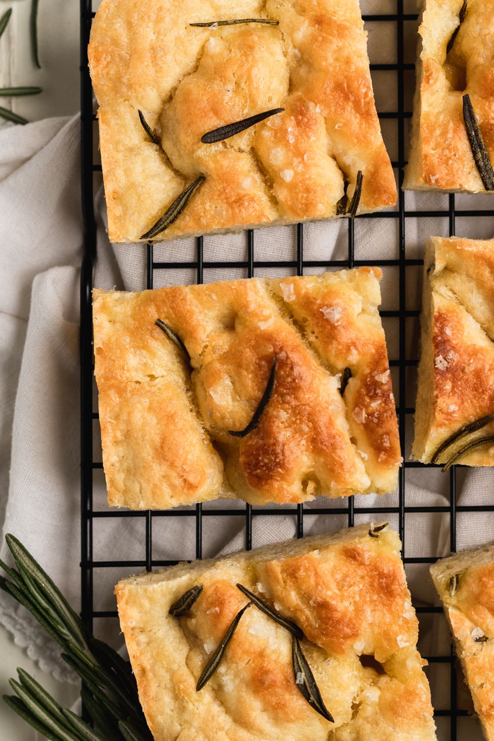 The first time I tried focaccia was on vacation. It was so deliciously crisp on the outside and soft on the inside. Not dense at all and, with some flaky sea salt and olive oil, I mean I just knew I wanted to make my own version of this. So, here we are.