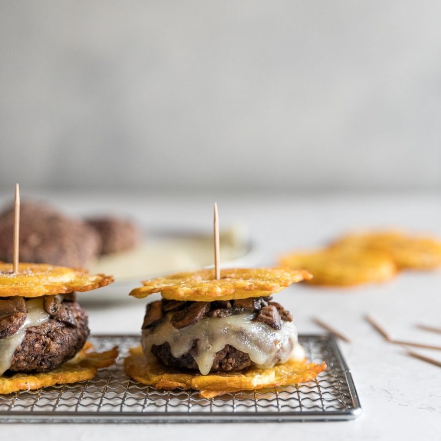 Mushroom Swiss Black Bean Burgers with Plantain Buns