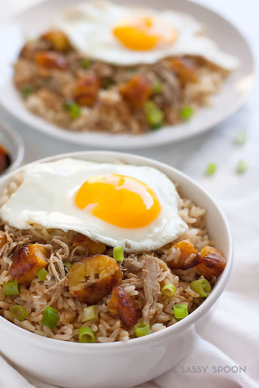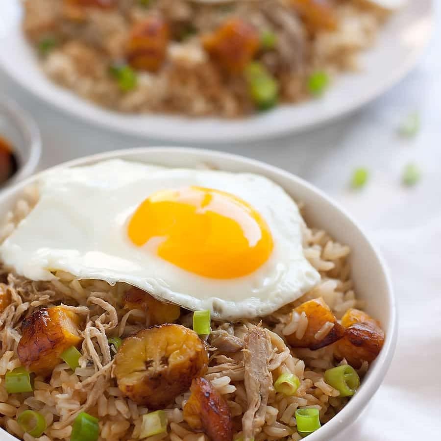 Inspired by one of my favorite restaurants here in Miami, FINKA, this Cuban Pork Fried Brown Rice is made with a fried egg on top instead of scrambled eggs in the mix and chopped sweet plantains because HECK YEAH.