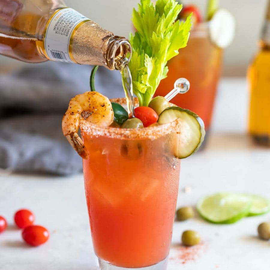 A Michelada is a beer cocktail made with beer instead of vodka plus a Bloody Mary has a whole bunch of fun garnishes on it; sometimes resembling an entire meal. They both have tomato juice (aka Clamato juice), hot sauce, and spices.