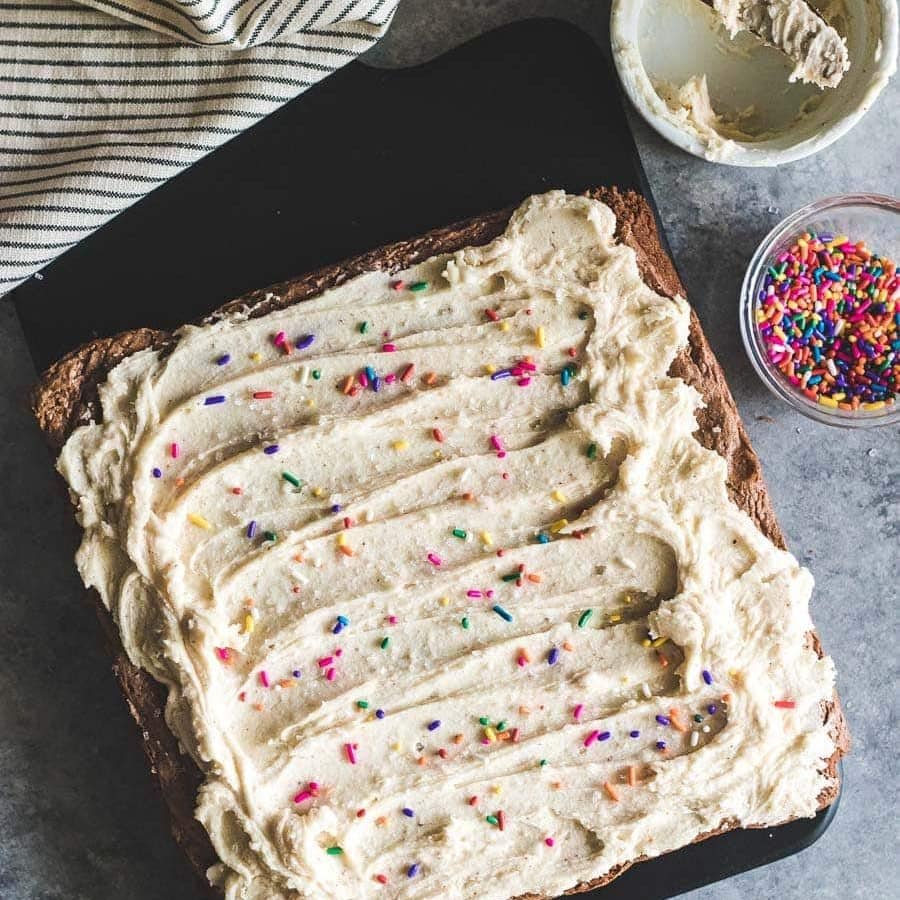 After seeing this recipe from A Cozy Kitchen, (which you should totally make if you’re into that sort of thing. I’m not a pumpkin fan. WHAT. I know, I’m a monster) I knew I had to add that brown butter frosting on SOMETHING.