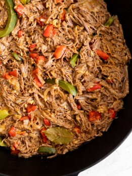 Learn how to make authentic Cuban ropa vieja! This slow-cooked Cuban-style shredded beef dish is made with tenderized flank steak, Cuban sofrito, and spices, all simmered in a flavorful tomato-based sauce. This ropa vieja recipe requires only 25 minutes of hands-on work once the meat is tenderized.