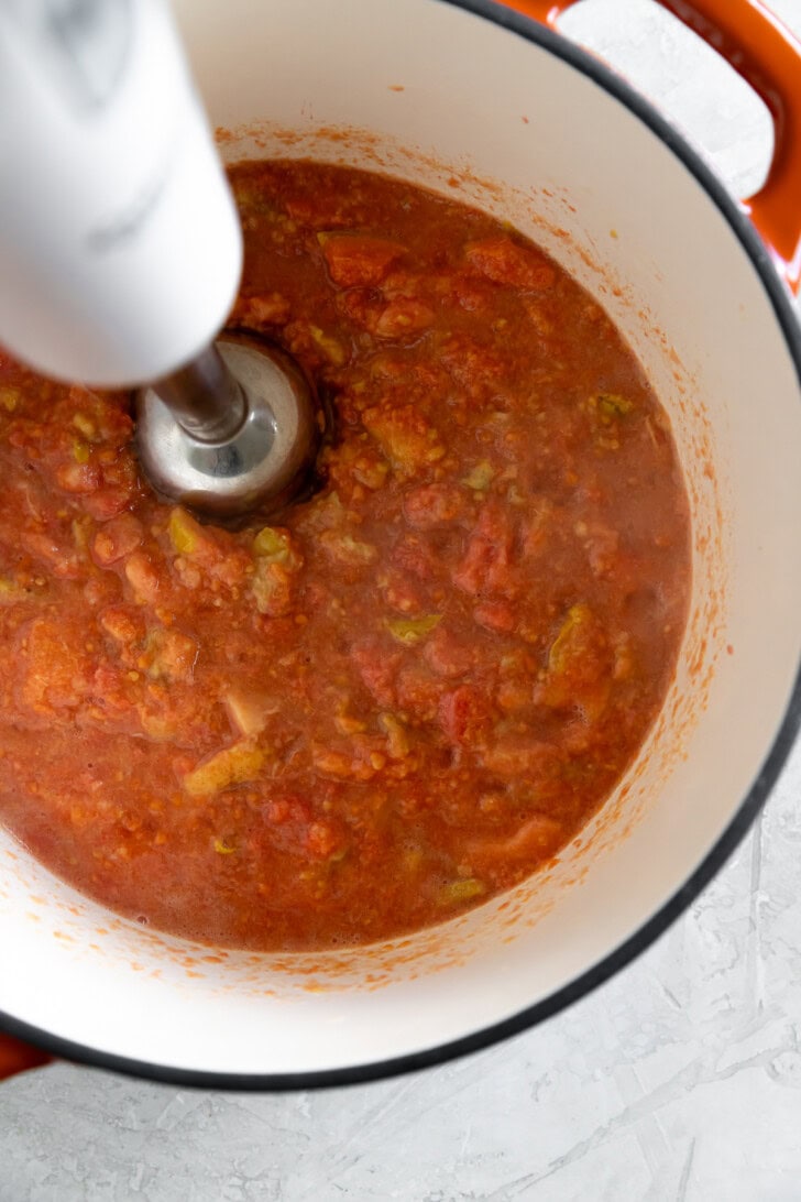 - Using an immersion blender, off the heat, blend the mixture until pureed.